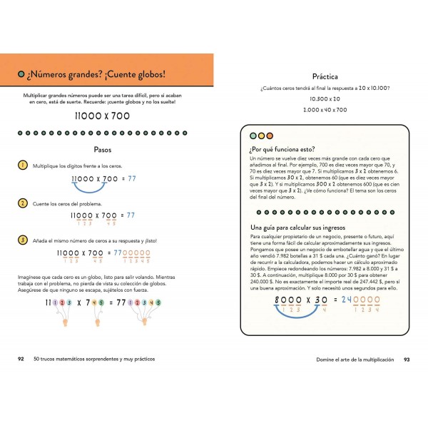 En este magnífico libro descubrirá más de 50 maneras insólitas de jugar con números para resolver ecuaciones, problemas y acertijos matemáticos en un instante y sin calculadora. La experta en matemáticas Tanya Zakowich usa diagramas de colores y originales explicaciones para ayudarnos a ver las matemáticas como una herramienta creativa capaz de resolver problemas de un modo rápido y claro. Tanto si desea dividir mentalmente números grandes, saber al momento la raíz cuadrada de 5.489 o calcular cuánto se gastará en su suscripción anual a Spotify, obtendrá la respuesta en cuestión de segundos. Estos alucinantes trucos le enseñarán que los números no son solo mágicos, sino también un recurso fenomenal para moverse por el mundo que nos rodea.