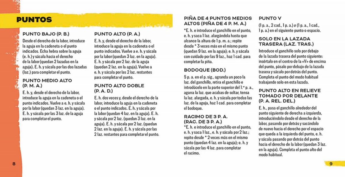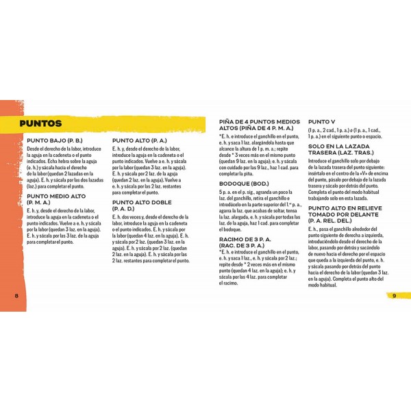 •Cada ficha lleva una foto de la labor en la cara delantera y su diagrama de puntos e indicaciones del patrón en la trasera.