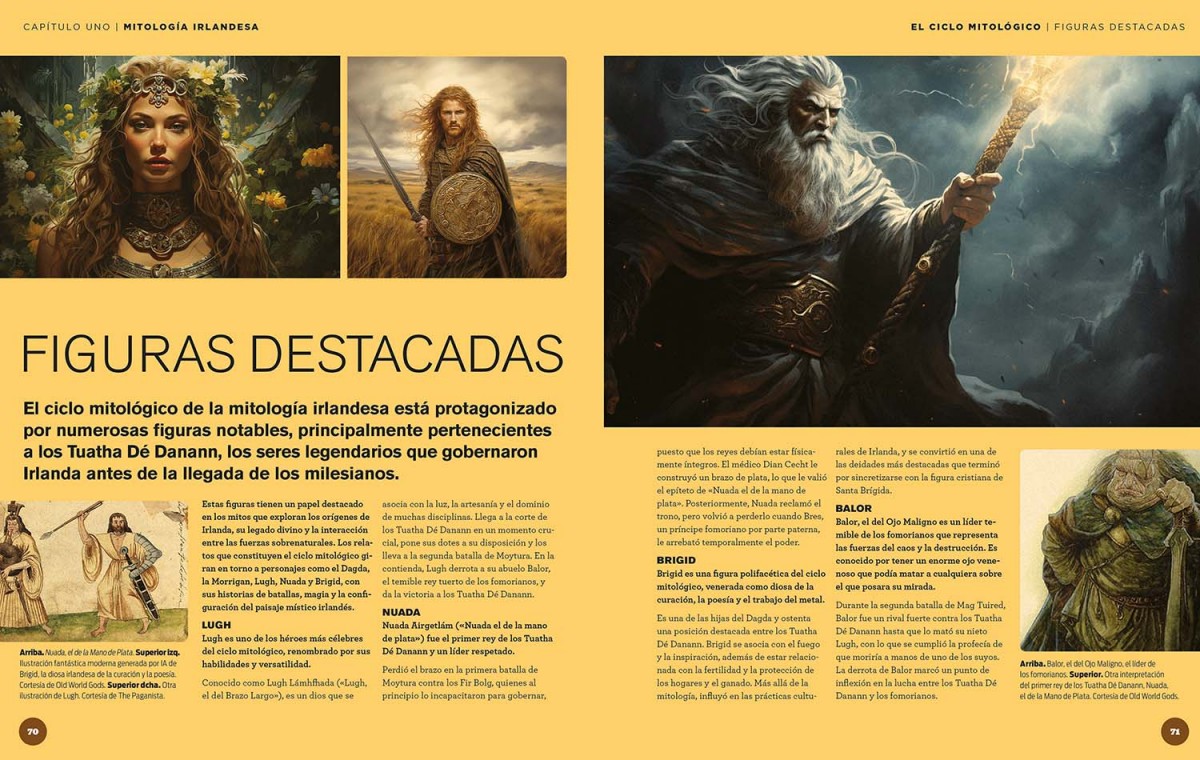La tradición oral de los celtas cuenta muchas crónicas de sus héroes. La historia mitológica de Irlanda se divide en cuatro grandes ciclos, con sus numerosas figuras legendarias, desde el semidiós Cú Chulainn hasta Fionn mac Cumhaill. Y, con su temprana encarnación en la mitología galesa, nuestro último capítulo da las claves de la leyenda artúrica.