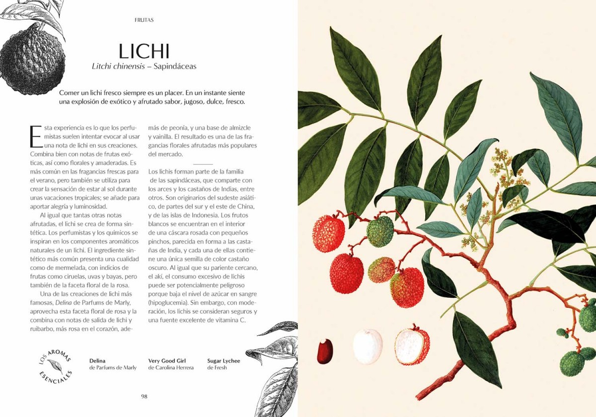 Perfume revela los orígenes botánicos de 100 embriagadores ingredientes que defifinen conocidos perfumes, como Chanel N.º 5 u Opium. Las evocadoras informaciones de los expertos de los Jardines Botánicos Reales de Kew, así como de los especialistas en fragancias Josh Carter y Samuel Gearing, se combinan con bellas ilustraciones botánicas en esta fascinante síntesis de los orígenes del perfume.