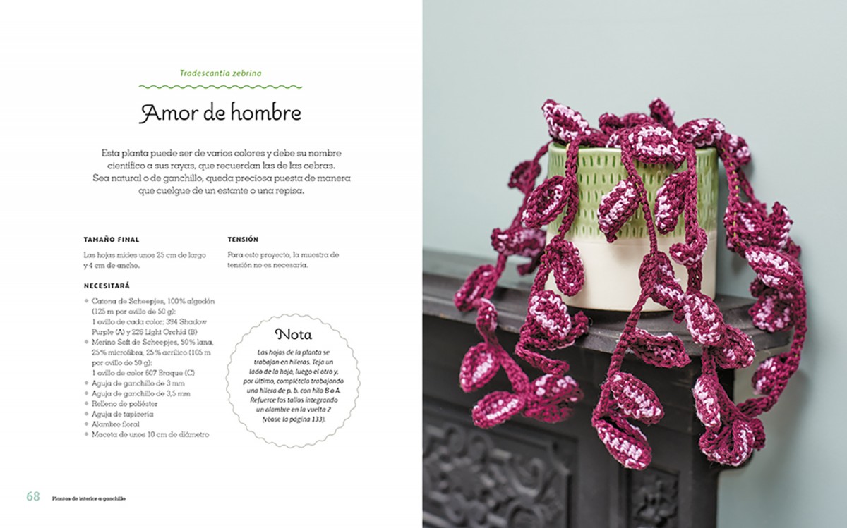 Las plantas confieren calma a cualquier espacio y, al crear los extraordinarios proyectos de este libro, podrá disfrutar de un exuberante oasis en su propio hogar sin tener que estar pendiente de regar, trasplantar o fertilizar. Ideal para jardineros de salón, poco dispuestos a ensuciarse las manos, estas bellezas botánicas de ganchillo le darán satisfacción durante todo el año sin complicaciones. Podrá confeccionar las típicas plantas que gustan a todo el mundo, como la yuca, la cinta y la costilla de Adán, además del cóleo con su llamativo follaje lila, la orquídea mariposa con sus delicadas florecillas y la amenazante venus atrapamoscas.
