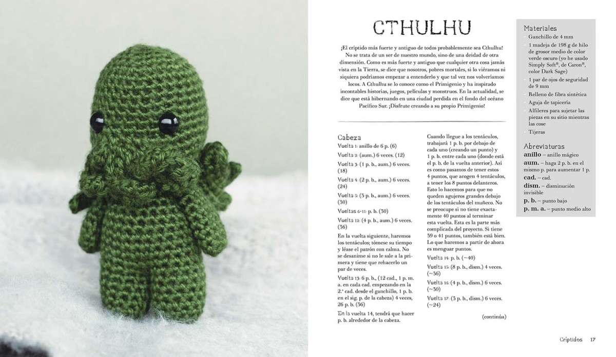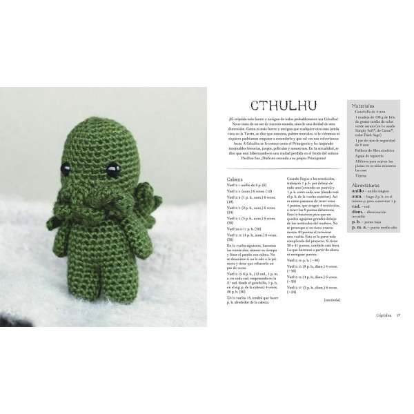 ¿Quién dice que lo espeluznante no puede ser mono? Con esta impresionante colección de amigurumis, sacará a la luz una horda de criaturas y críptidos en todo su terrorífico y adorable esplendor. Podrá crear una infinidad de seres aterradores, desde críptidos clásicos, como Cthulhu, Nessie y Mothman, hasta conocidos seres paranormales, como un zombi, un licántropo y el mismísimo Nosferatu.