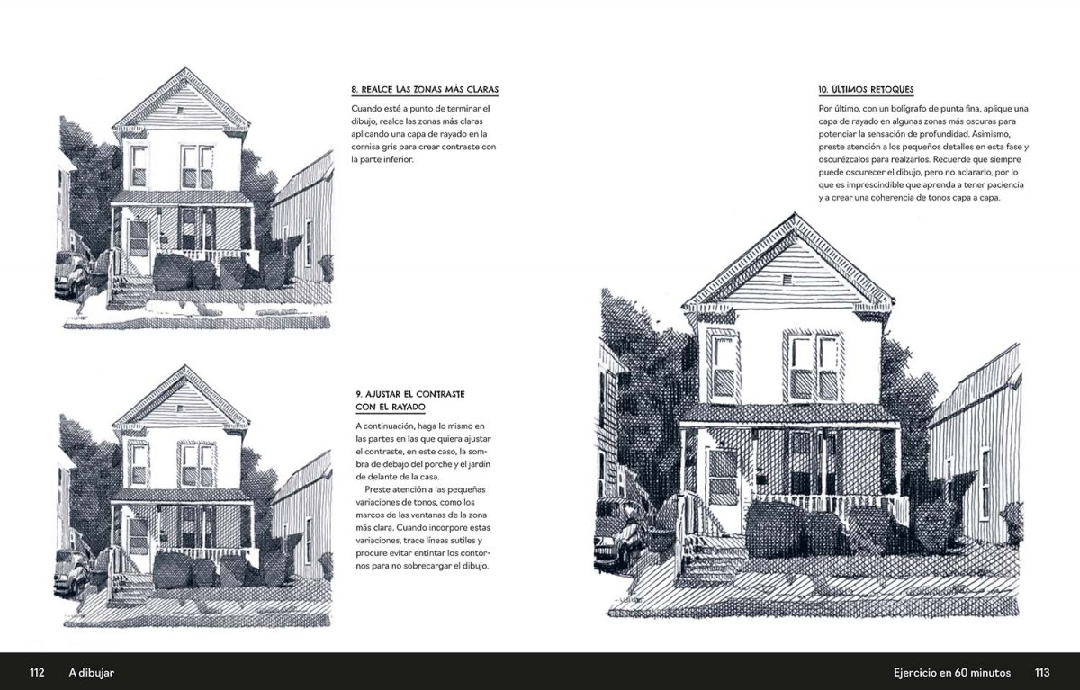 • Descubra técnicas como el rayado cruzado, el punteado o los garabatos.